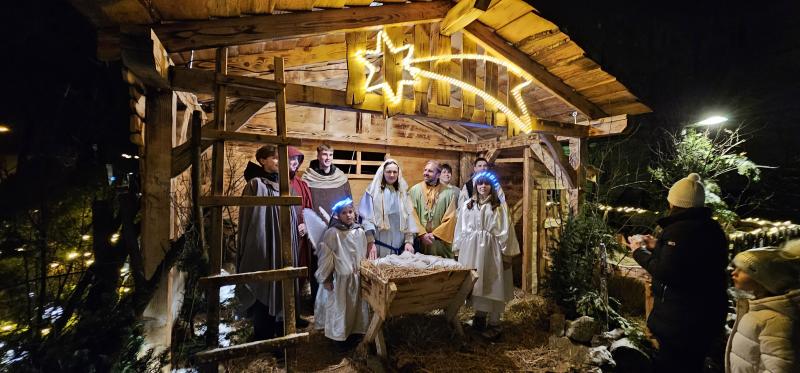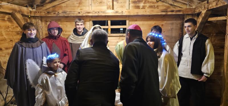 Nakon Svete mise vjernici su se uputili prema Trg kardinala Alojzija Stepinca, gdje su uprizorene žive jaslice. U realizaciji su sudjelovali obitelj Kolačević iz Pazarišta, obitelj s osmero djece, zajedno s učenicima Gimnazija Gospić. Program je završen u ozračju radosti, zajedništva i božićnog mira, ostavivši snažan dojam na okupljene vjernike.