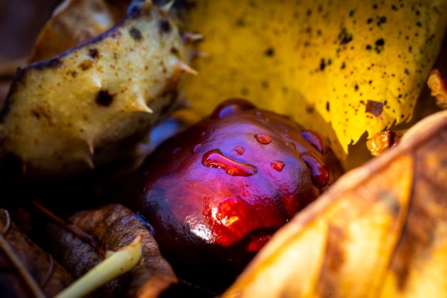 U Gospiću je jutros zabilježena prava jesen u Lici. Serija forografija nagrađivanog ličkog fotografa Nikole Mraovića donosi mirne, zasićene tonove listopada, listove pitomog kestena razasute po gradskim ulicama, parkovske klupe uronjene u tepih od žutog i hrđavog lišća te uske staze koje nestaju pod slojem jesenskih boja. Vidljiv je i mikrosvijet – kapljice na glatkom kestenu, bodlje čička i meka mahovina pretvaraju se u male studije teksture, dok gljiva u sjeni otkriva kako šuma diše nakon kiše.