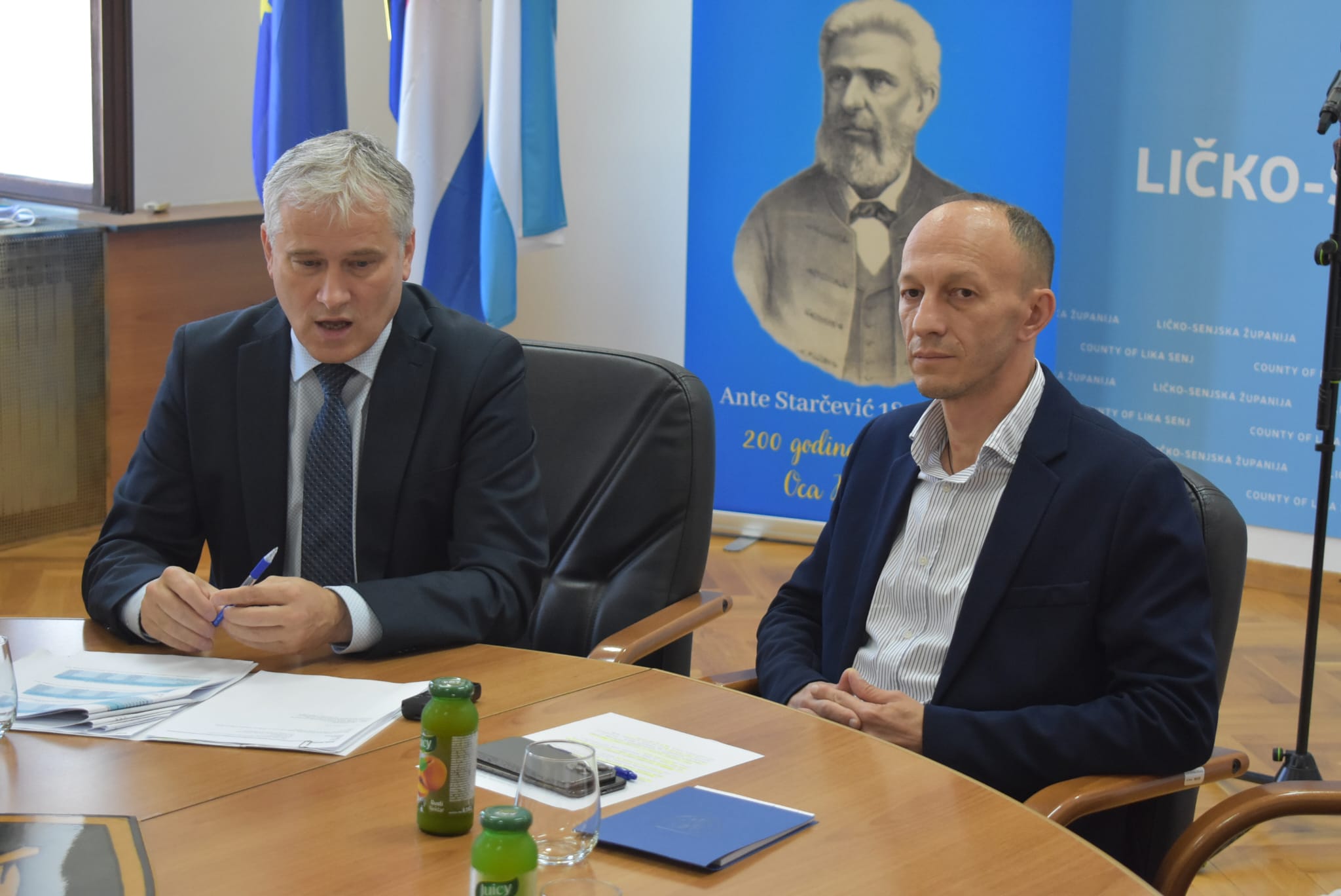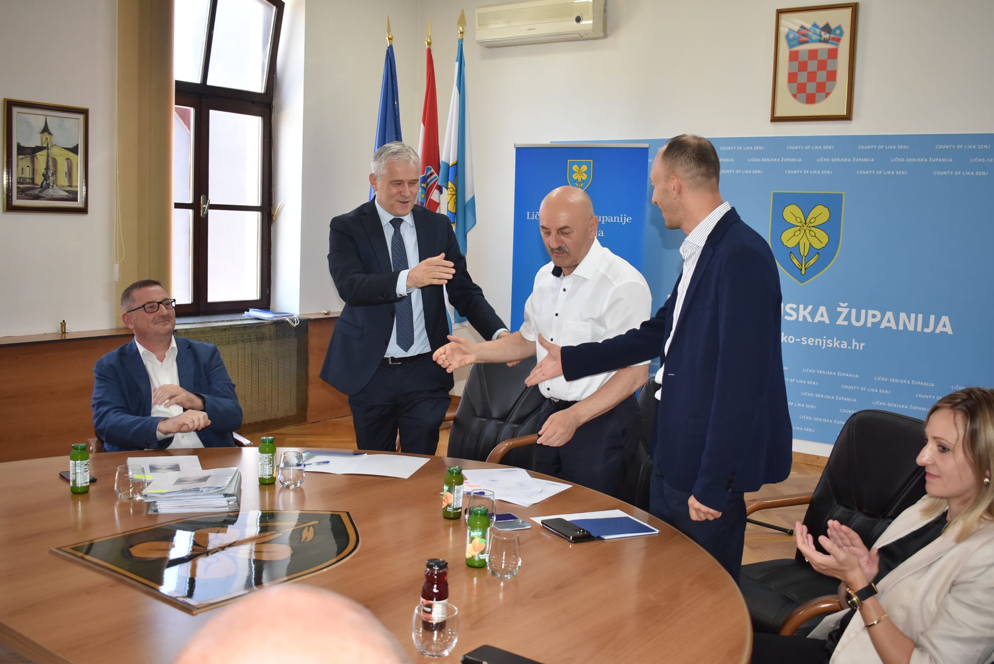 U dvorani za sastanke Ličko-senjske županije danas je na inicijativu župana Ernesta Petryja organizirano potpisivanje Ugovora kojima su Grad Senj i Grad Gospić od Hrvatskih voda priskrbili znatna sredstva za uređenje vodne infrastrukture na svojim područjima. Na ovaj način Grad Senj je dobio 520.000 eura za izgradnju vodovoda i odvodnje, a Grad Gospić 1.080.000 eura za uređenje obale rijeke Novčice odnosno budućeg šetališta uz rijeku.