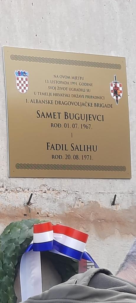 Esad Çollaku, predsjednik Udruge Albanaca branitelja Hrvatske u Domovinskom ratu u govoru je naglasio da su poginuli branitelji Fadil Salihu i Sametu Bogojevci bili pripadnici albanske dragovoljačke brigade, a bilo ih je sveukupno oko 550, a isti su bili začetnici formiranja albanske brigade koja je u cijelosti bila sastavljena od Albanaca prebjeglih iz tadašnje JNA i Albanaca koji su živjeli u Republici Hrvatskoj.