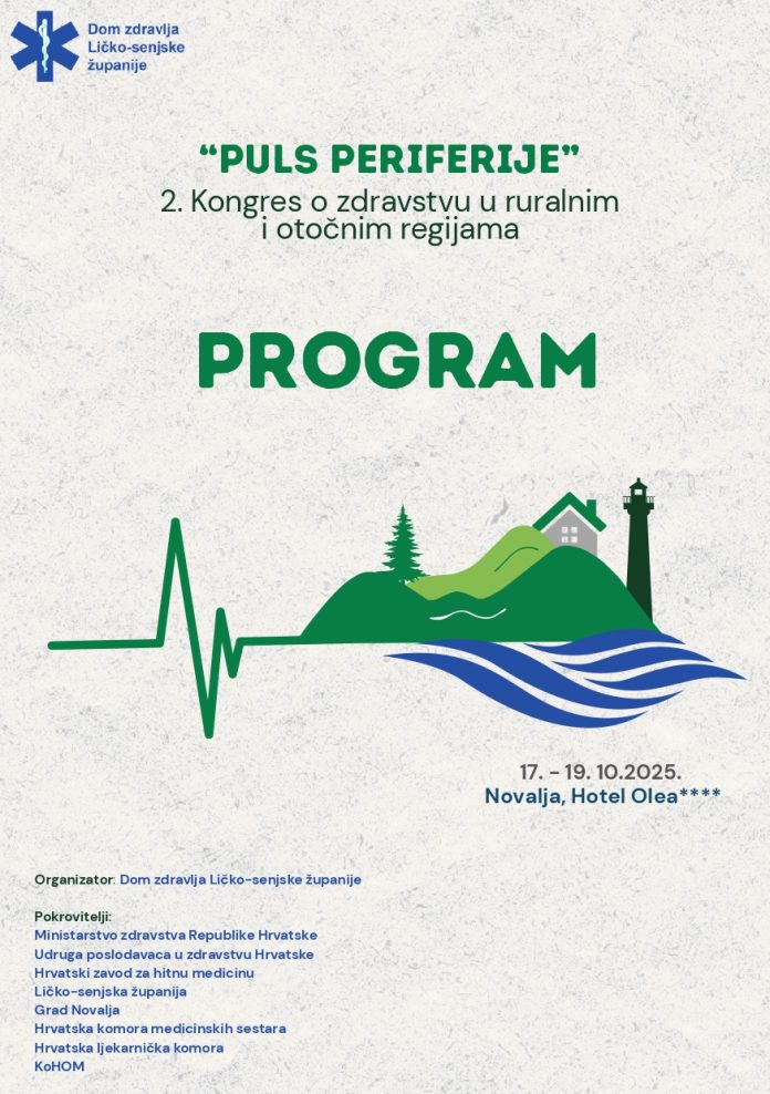 Nakon uspješnog prvog izdanja, „Puls periferije“ – 2. kongres o zdravstvu u ruralnim i otočnim regijama ponovno okuplja vodeće stručnjake, zdravstvene djelatnike i donositelje odluka kako bi zajednički otvorili ključno pitanje hrvatskog zdravstva: jednaka dostupnost zdravstvene skrbi za sve, bez obzira na udaljenost. Kongres će se održati u Novalji od 17. do 19. listopada 2025. godine, u organizaciji Doma zdravlja Ličko-senjske županije.