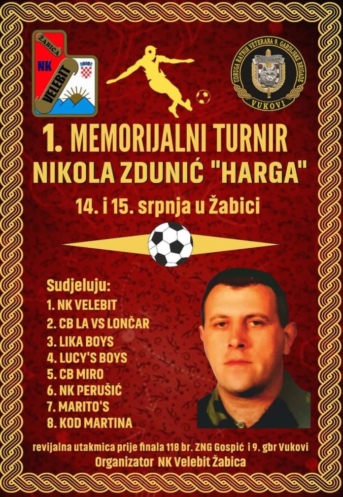 U organizaciji NK “Velebit” i uz podršku Zajednice sportova Ličko-senjske županije te Grada Gospića, Gospić će ovog mjeseca postati središte malonogometnih zbivanja. Memorijalni malonogometni turnir Nikola Zdunić Harga održat će se 14. i 15. srpnja 2023. na igralištu u Žabici.